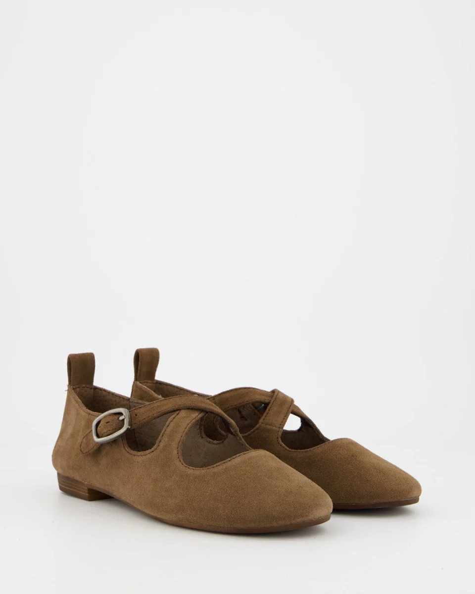 The most comfortable leather artisan shoes made in Spain. Ballerinas with two crossed straps made of premium suede. Flat shoe.
