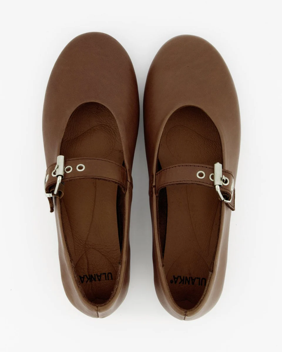 The most comfortable leather artisan shoes made in Spain. Ballerinas with a strap made of premium leather. Flat shoe.