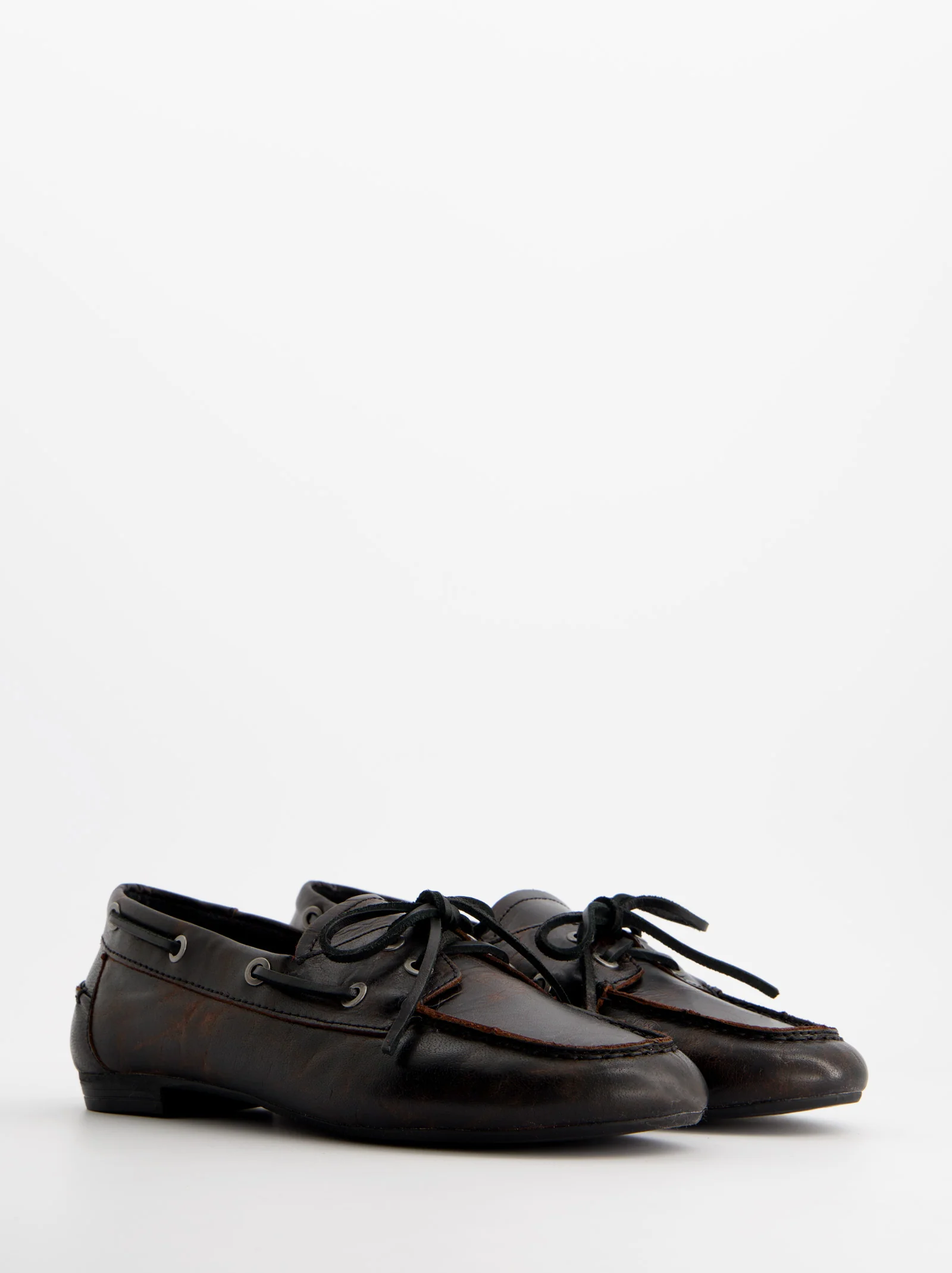 DARK BROWN LEATHER BOAT SHOES - BLOSSOM