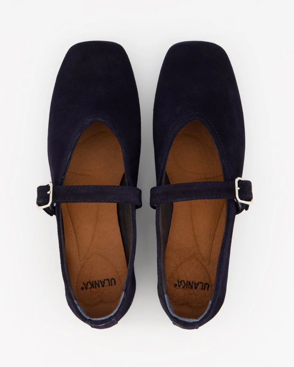 The most comfortable leather artisan shoes made in Spain. Ballerinas with a strap made of premium suede. Flat shoe.