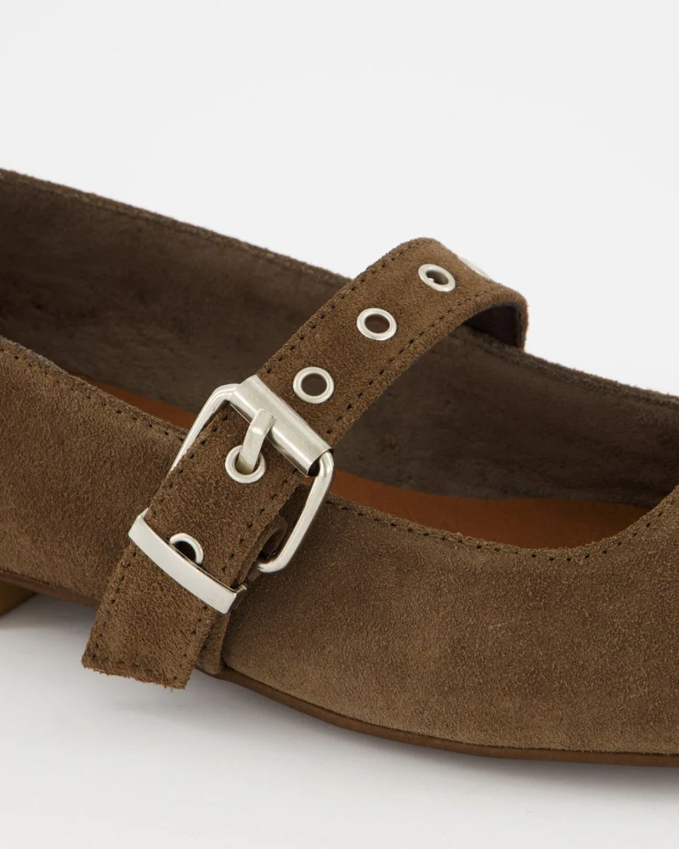 The most comfortable leather artisan shoes made in Spain. Ballerinas with a strap made of premium suede. Flat pointe shoe.