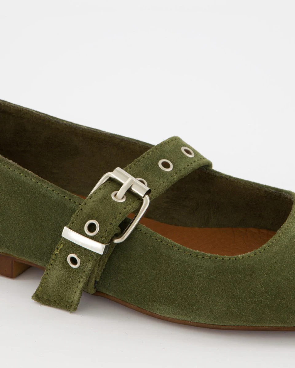 The most comfortable leather artisan shoes made in Spain. Ballerinas with a strap made of premium suede. Flat pointe shoe.